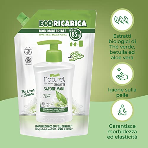 Winni's Naturel - Sapone Liquido Mani Ipoallergenico in Ecoformato, Adatto alle Pelli più Delicate, Fragranza Thè Verde e Betulla, con Materie Prime di Origine Vegetale e Bio, 500 ml