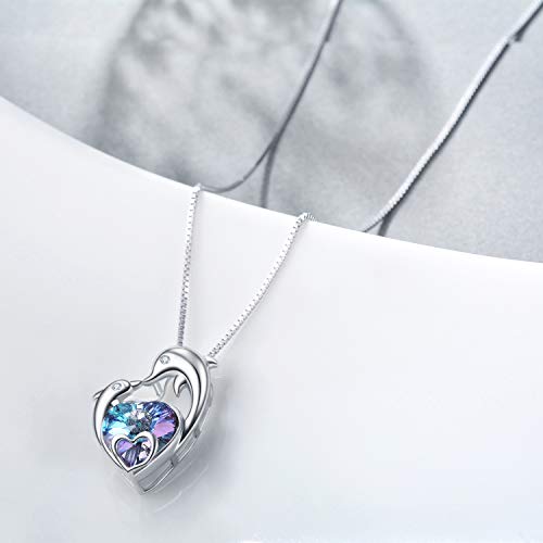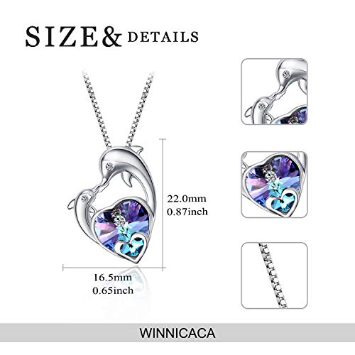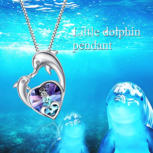 WINNICACA Tartaruga in argento sterling a tema oceanico/sirena/medusa/collana di dolfini per donne regali (Viola-delfino)