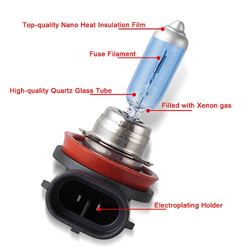 WinPower H8 alogena Lampadine per fari 100W 5000k Bianco caldo Lampada 12V Auto Fendinebbia luce laterale DRL Lampadina, 2 pezzi