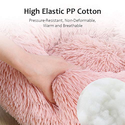 Super morbido e confortevole: la superficie del letto per animali domestici a ciambella è realizzata in ecopelliccia lunga e soffice, morbida al tatto, il letto per cani è comodo, caldo e resistente.