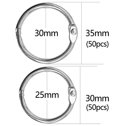WINSDL 100 Pezzi Anelli per Fogli Metallo, Anelli Rilegatura Anelli del Libro 30mm/35mm, Leaf Binder Metallici Libro Anelli Portachiavi per Rilegare Album di Ritagli, Promemoria, Album di Artigianato