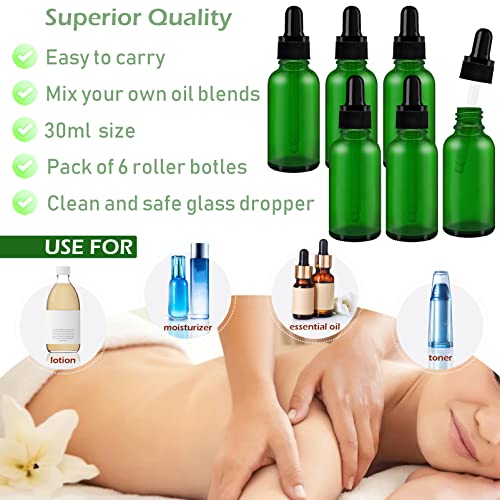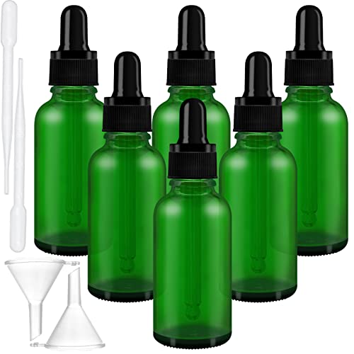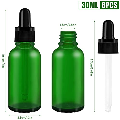 WINSDL 6 Pezzi Bottiglie Contagocce Vetro con Pipette Contagocce, Flacone Contagocce Verde con Contagocce, con 2 Contagocce e Imbuto (30ml)