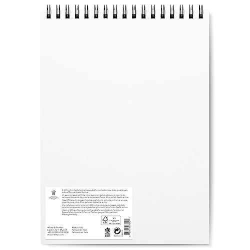 Winsor & Newton Carta per acquarello, Grana Fine, 300gr, Miscela Di Fibre di Cotone 25% e Cellulosa, Bianco Naturale,, Priva di Acidi, 22,9 x 31cm, Blocco a Spirale, 12 Fogl