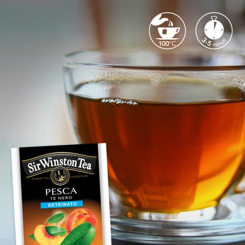 Sir Winston Tea, Tè Nero Deteinato Pesca, 60 Filtri (3 Confezioni da 20 Filtri), Gusto Morbido e Fruttato, Ideale sia Caldo che Freddo, Senza Lattosio, Glutine e Allergeni, Vegan