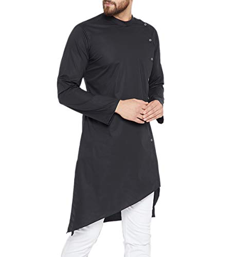 WINTAGE Festive Uomini del Cotone di Seta e Casual Kurta Pigiama Pigiama: Nero, di Grandi Dimensioni