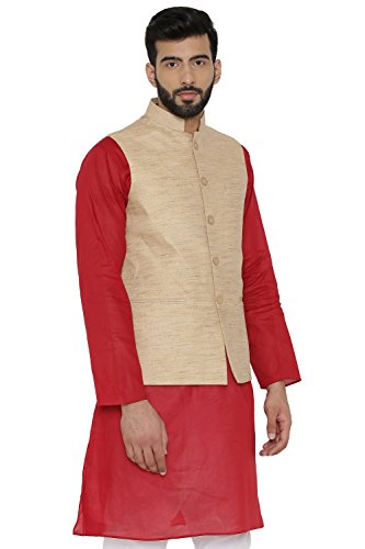 WINTAGE Uomo Khadi Tailored Fit partito/festiva indiano Nehru Jacket del panciotto della maglia: Beige, Grande
