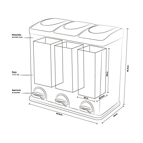 Wintem Pattumiera per Raccolta Differenziata Contenitore Bidone Cestino a 3 Scomparti in Acciaio Inossidabile 54 Litri