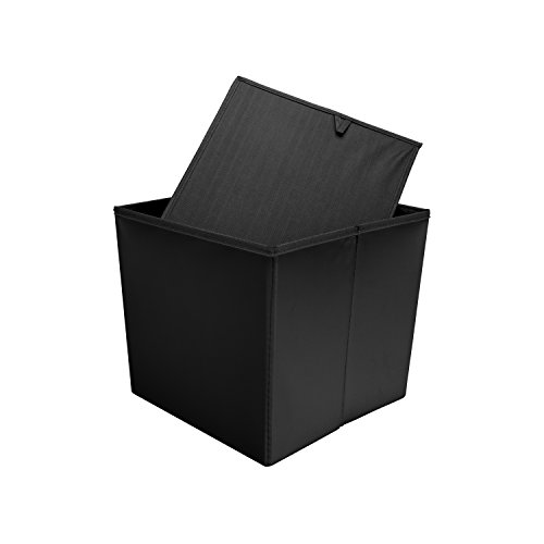 Wintem Pouf CUBO da 38x38x38 CM POGGIAPIEDI Sgabello Contenitore A CASSAPANCA Puff Pieghevole in Ecopelle Imbottito (Nero)
