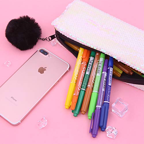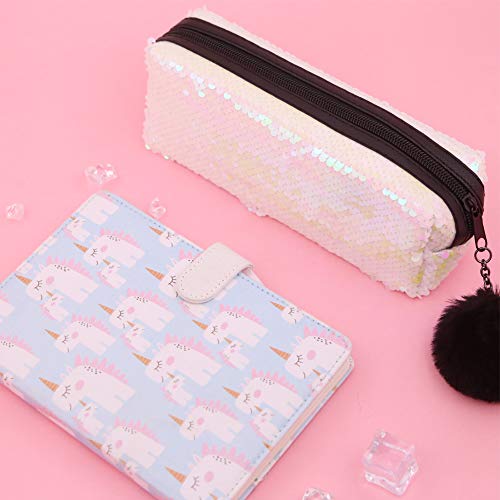 Winterworm Astuccio per matite reversibile con glitter arcobaleno (bianco + rosa)