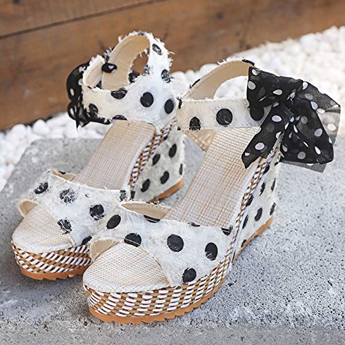 WINTOM Sandali 35 Donna High Heels 50Er Jahre Sandali Per Le Donne Sandali Con Bocca Di Pesce In Pizzo Con Zeppa A Pois Da Donna