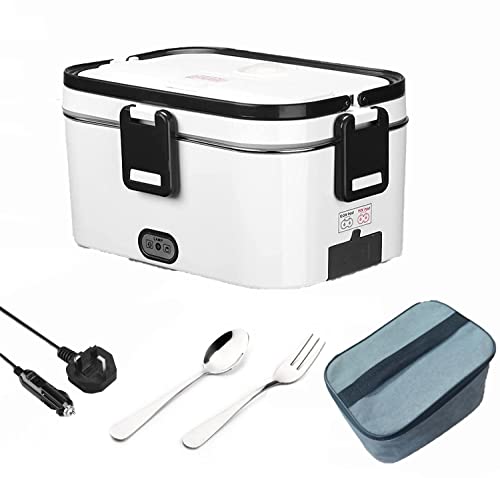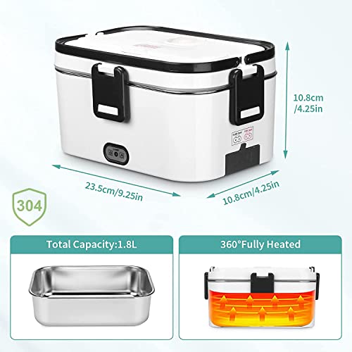 Winverty Lunch Box Elettrico Acciaio Inossidabile, Scalda Vivande Elettronico, Scalda Cibo Elettrico Portatile, Scaldavivande Elettrico Doppio Portatile, scaldavivande ermetico 1.8L (Grigio)