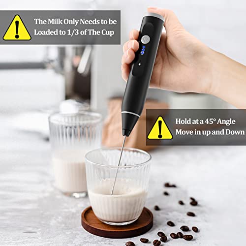 Winzwon Montalatte Elettrico, Frullino Elettrico USB Ricaricabile (Nero)