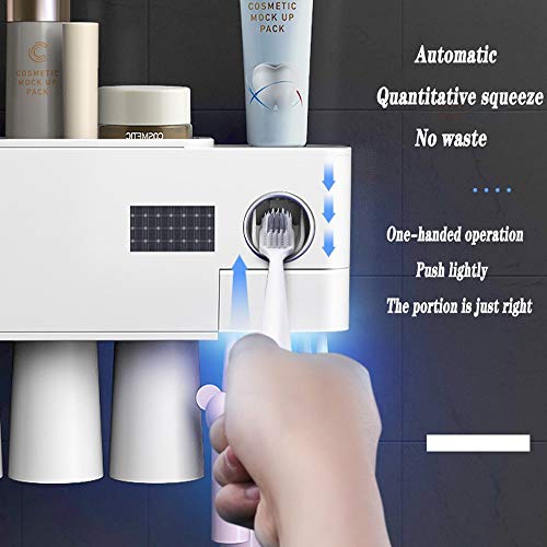 WIQUYBML Portaspazzolino da Bagno UV portaspazzolino portaspazzolino con Dispenser dentifricio Multifunzionale a Parete USB e Ricarica Solare 4 Tazze magnetiche e Organizer per Cosmetici e cassetto