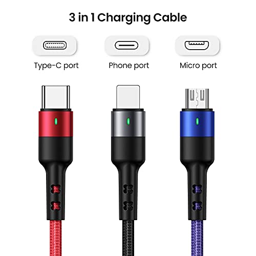 [Un cavo per tutti]: Un cavo universale per più caricatori soddisfa una varietà di esigenze quotidiane! Questo è un cavo multiplo 3 in 1 con connettori multipli: IP + Type-C + Micro USB. Puoi caricare 3 diversi dispositivi con un solo cavo caricabatterie multiplo: più aiutanti per risparmiare spazio e tempo.