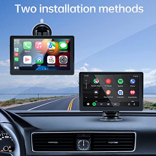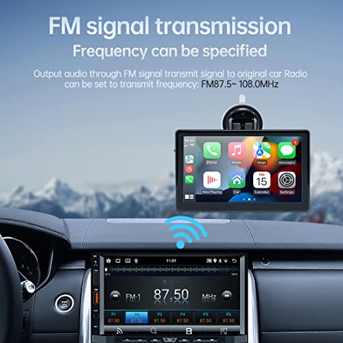 Wireless Apple Carplayer Android Auto Monitor, 7"Full HD Touch Screen Ricevitore autoradio portatile, autoradio con collegamento specchio, Bluetooth Dash parabrezza montato con telecamera posteriore