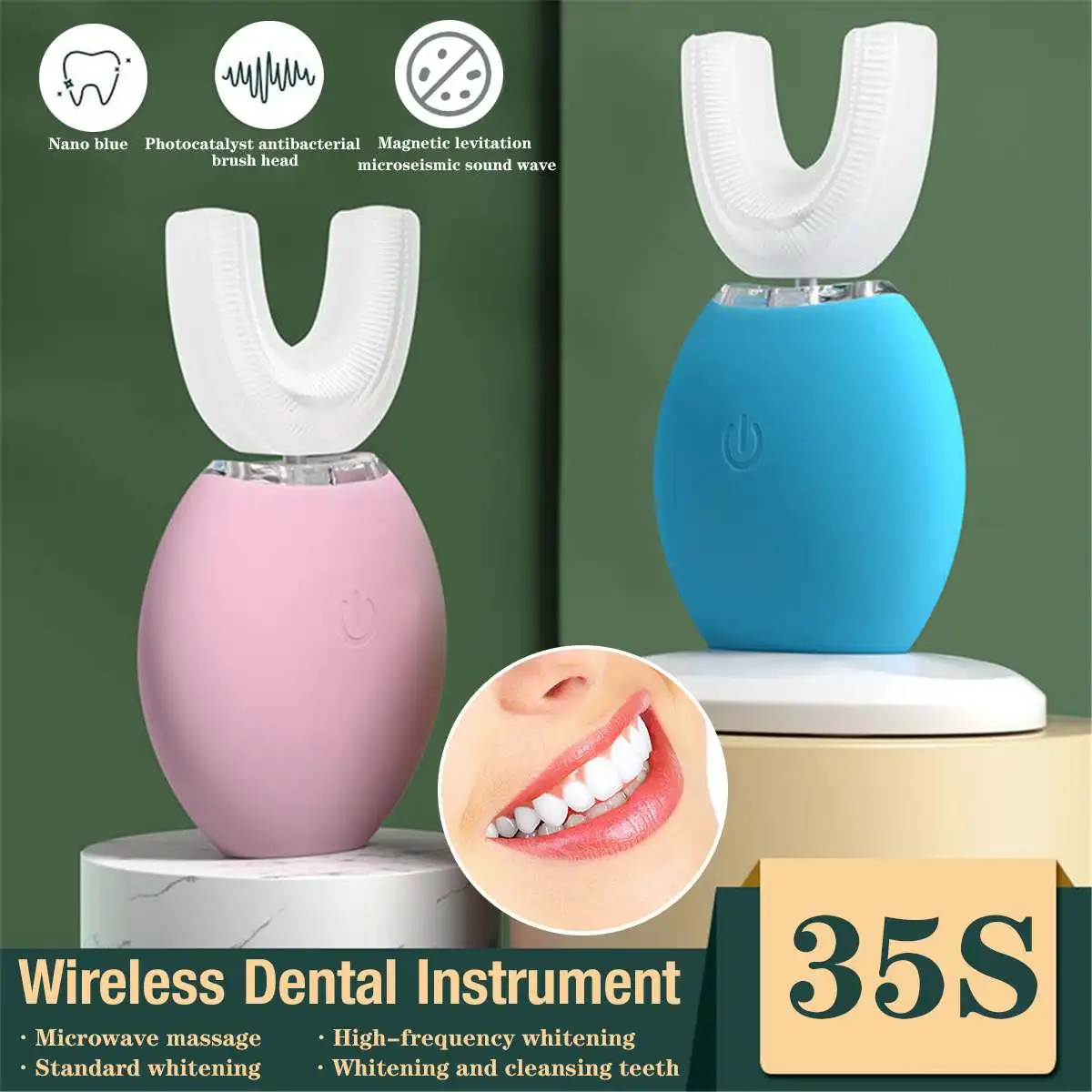 Wireless Automatic Electric Toothbrush Teeth Whitening Tooth Cleaner 360 Degrees U Type USB Silicone Teeth Brush