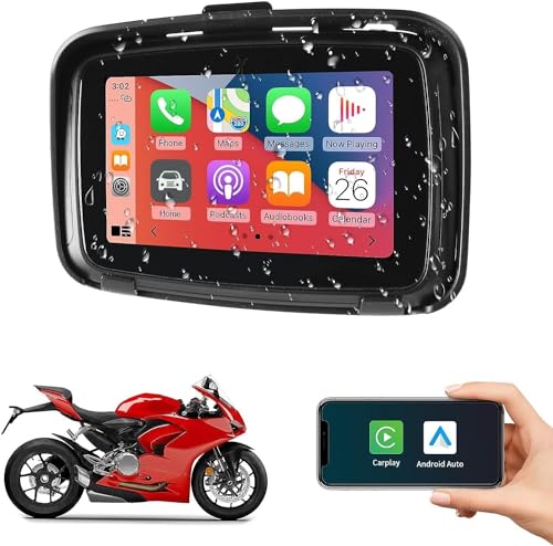 Wireless CarPlay e Android Auto Touchscreen per moto, impermeabile 5 pollici Touch Screen dispositivo di navigazione GPS via CarPlay/Android Auto per moto