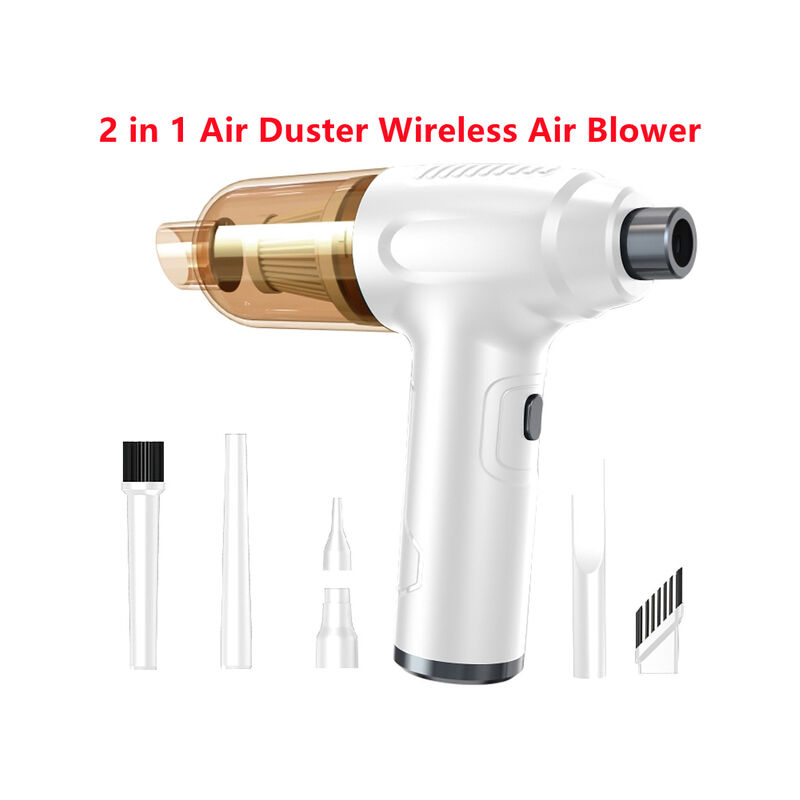 2 in 1 soffiante aspirante per auto aspirapolvere ricaricabile per uso domestico macchina per la pulizia delle finestre del telaio della tastiera portatileCaratteristiche:-3-in-1 aspirapolvere, gonfiatore, ventilatore e aspirapolvere. Questo prodotto è dotato di una varietà di accessori e può essere utilizzato più volte.-L'ugello sottile rende gli angoli di pulizia o fuori portata più facile. Adatto per tastiere, custodie per computer, seggiolini auto. La funzione gonfiabile può servire il tuo letto e divano gonfiabili.-Il design ergonomico scientifico lo rende molto facile da usare, non puoi più tenere la lattina fredda durante il soffiaggio delle cose. Molto più conveniente/economico rispetto all'acquisto costante di aria in scatola.-L'ugello è staccabile, consente un migliore utilizzo dello spazio e può essere pulito ed ecologico.-120W ad alta potenza, rimozione della polvere a lungo termine, velocità 50000r.-La batteria al litio ricaricabile ad alta capacità da 6000mAh incorporata