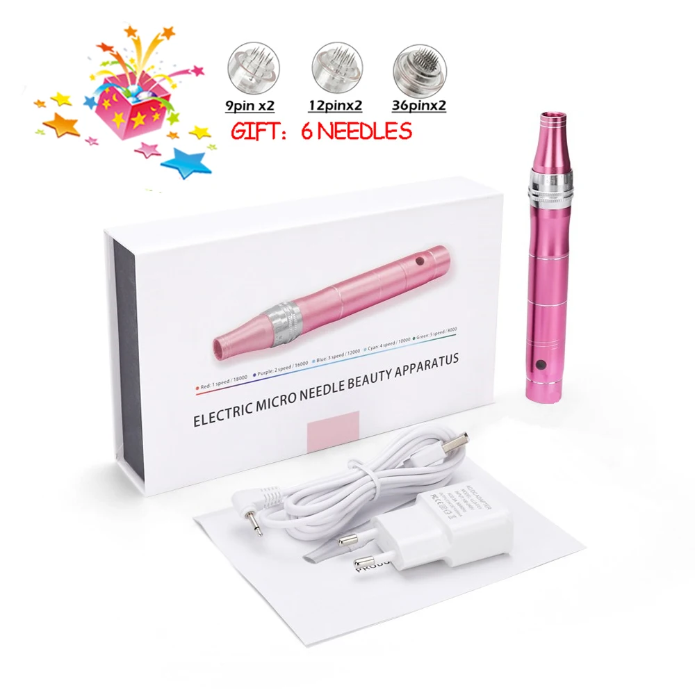 Wireless Dr Pen Electric Derma Pen Professional Micro Needling Pen Acne Scar Removal Mesotherapy with 6Pcs Needles Face Care