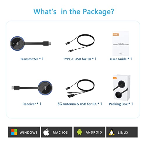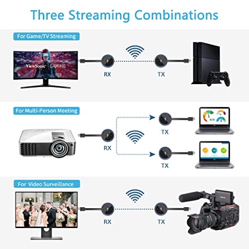 【Streaming HD 4K】Questo wireless HDMI transmitter and receiver video wireless supporta tutte le risoluzioni HDMI fino a 4K (3840x2160p a 60Hz), consente video illimitati in 1080p (HD), inclusi video 3D e visualizzazione multipla. Offre la migliore esperienza visiva di ultra alta definizione. NOTA: La risoluzione finale determinata dal video originale. Windows supporta solo 1080P.