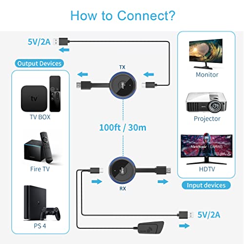 Wireless HDMI Trasmettitore e Ricevitore - Transmitter and Receiver HDMI Wireless 5G/2.4G Portata 164FT/50M Video in Streaming 4K HD con Antenna Esterna per TV/Live/Meeting/Giochi in Streaming, Blu