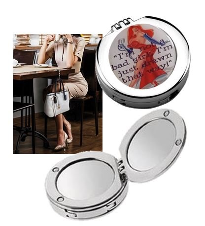 Fashion Gancio appendi borsa pieghevole con specchietto incorporato in metallo di alta qualitá
