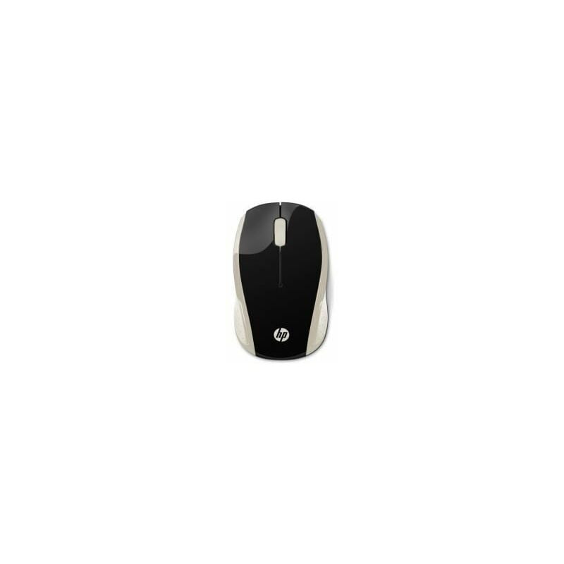 HP Wireless Mouse 200 (Silk Gold). Fattore di forma: Ambidestro. Tecnologia di rilevamento del movimento: Ottico, Interfaccia dispositivo: RF Wireless, Risoluzione movimento: 1000 DPI, Tipo di pulsanti: Tasti premuti, Numero di tasti: 2, Tipo di scorimmento: Rotella. Alimentazione: Batterie. Colore del prodotto: Nero, Oro
