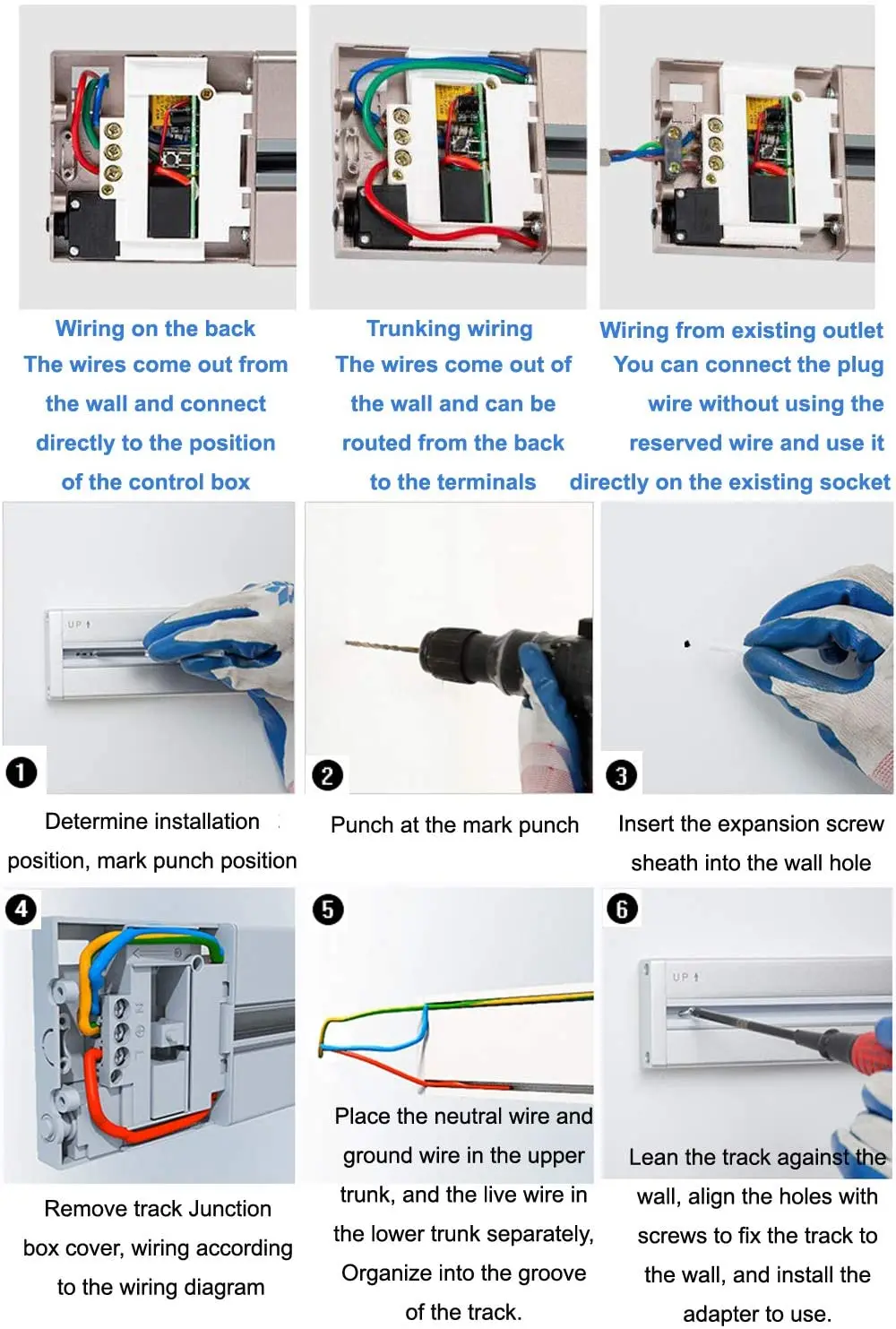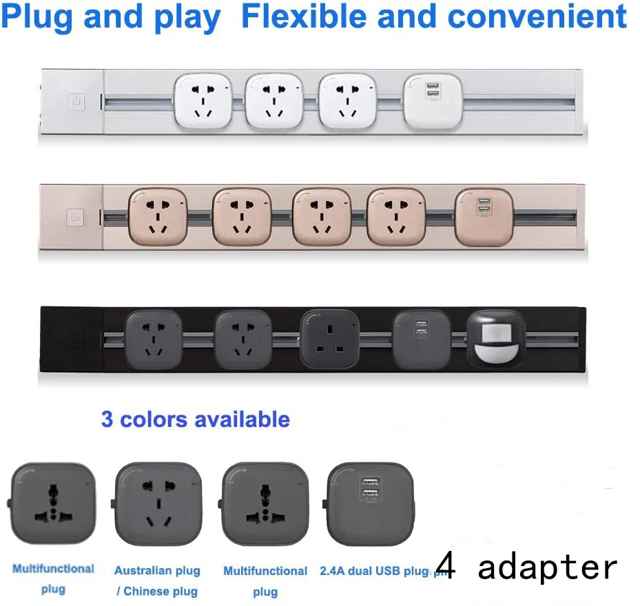 Wireless Power Track Socket Mobile Rail Smart Socket Power Extension Socket Panels for Walls Socket with USB/tee in socket(0.6M)