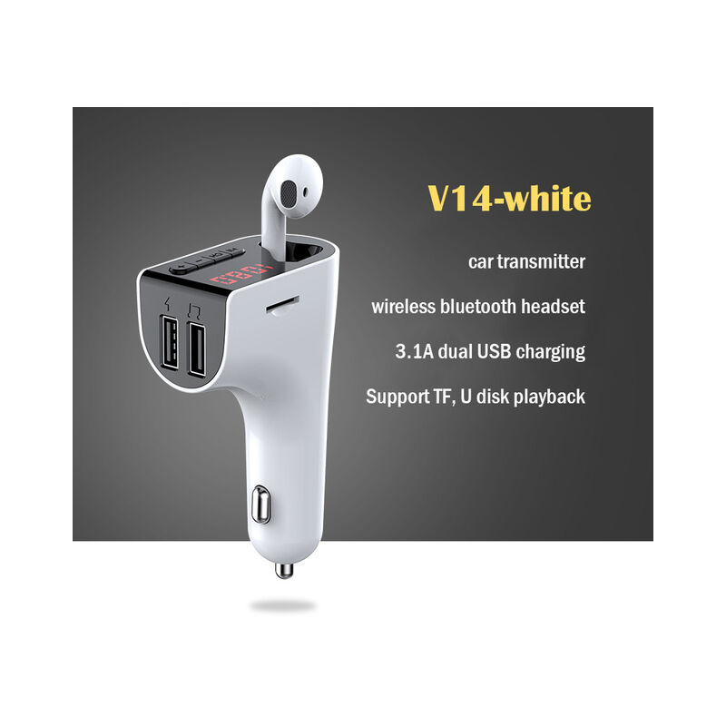 V14 smart car charger bluetooth headset charging Dual USB output, intelligent current limit, solve the trouble of fast charging in the car, the current can reach 3.1A;