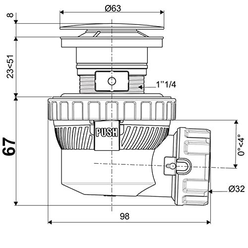 - Sistema Quick clac: apertura e chiusura tramite semplice pressione sul clamshell - Guadagno di spazio: ingombro 67 mm - Sifone completamente estraibile per una manutenzione semplice e veloce