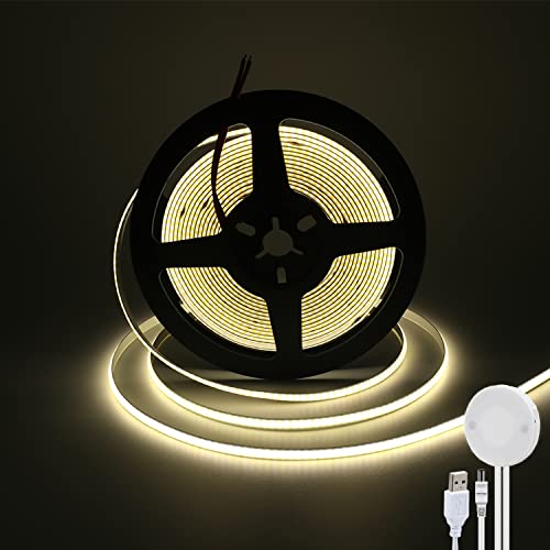 Wisada Striscia LED COB dimmerabile, 0,5 m, DC 5 V, 320 LED/m, flessibile, con sensore USB, per interni, non impermeabile, luce bianca naturale, COB LED con dimmer per armadio di casa (FPCB: 5 mm)