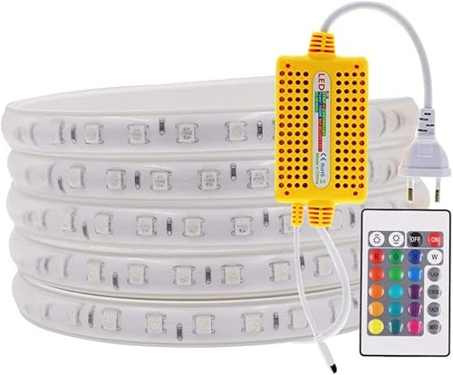 Decorazione e illuminazione: questa striscia LED RGB da 220 V non si estende facilmente. Funziona bene anche da -35° a 200°. Ideale per casa, balcone, feste, giardino, edifici commerciali, vetrine, interni ed esterni e illuminazione.