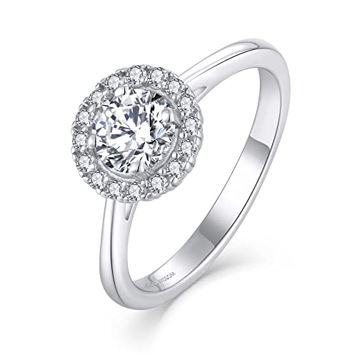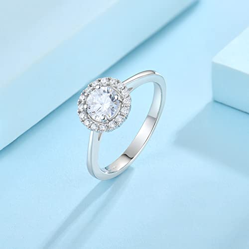 JO WISDOM Anelli in Argento 925 Donna,Anello Halo con 5A Zirconia cubica Aprile Birthstone