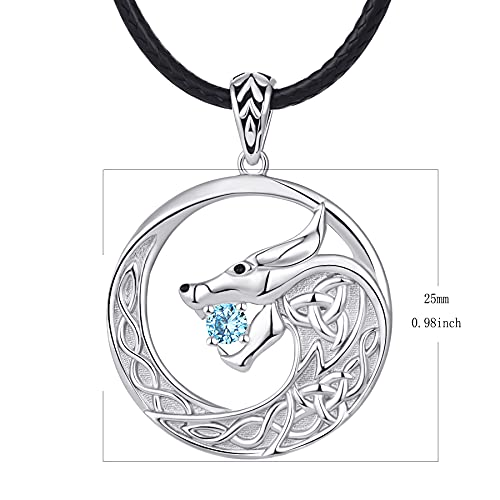 JO WISDOM Argento 925 Lupo Ciondolo Collana per Uomo Donna con acquamarina
