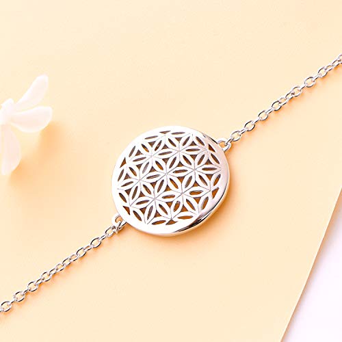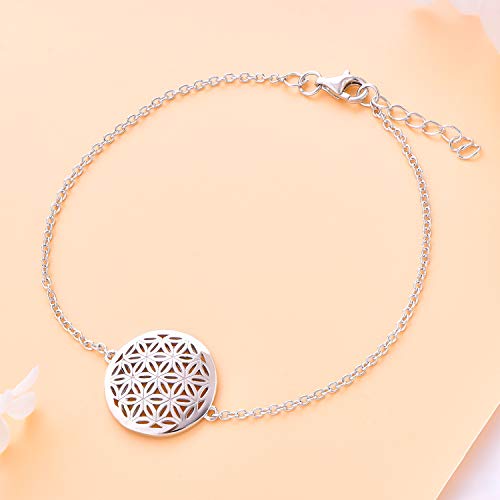 JO WISDOM Braccialetto Argento 925 Donna Fiore della vita Amuleto Bracciali Braccialetti con Placcato in Oro Bianco,18cm+2cm
