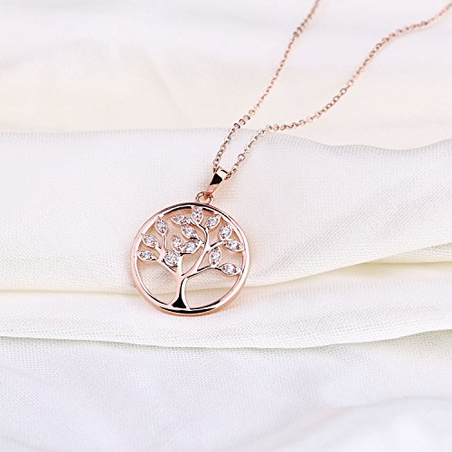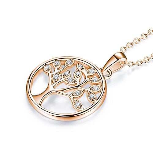 JO WISDOM Collana Albero Della Vita Argento 925 AAA Zirconia Cubica Donna con placcato oro rosa