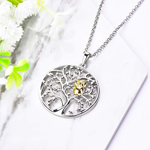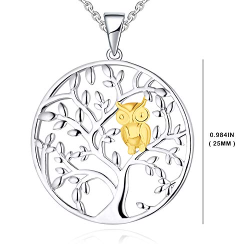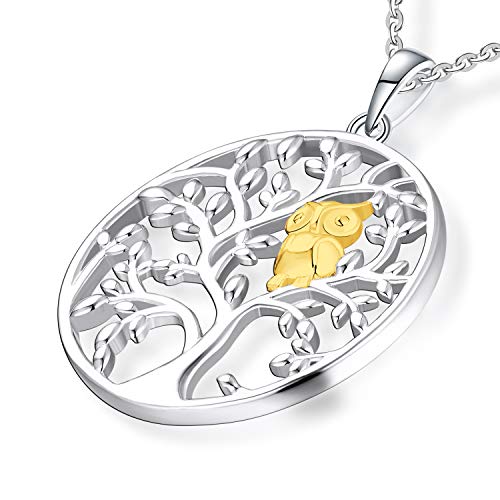 JO WISDOM Collana Albero Della Vita con Gufo Argento 925 Donna con placcato oro giallo