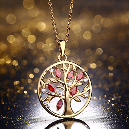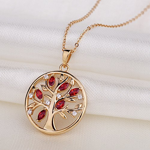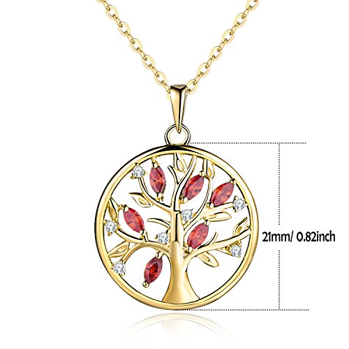 JO WISDOM Collana Albero Della Vita Yggdrasil Argento 925 AAA Zirconia Cubica Gennaio Birthstone Colore Granato Donna con placcato oro giallo