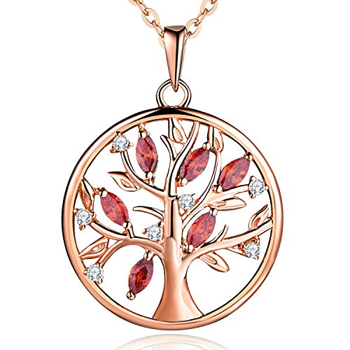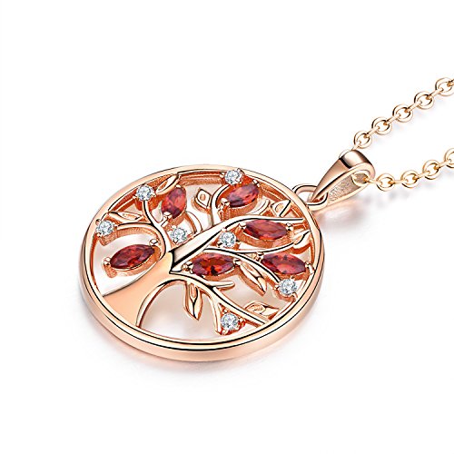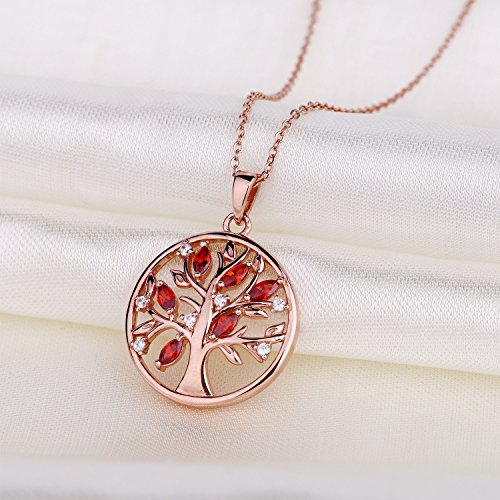 JO WISDOM Collana Albero Della Vita Yggdrasil Argento 925 AAA Zirconia Cubica Gennaio Birthstone Colore Granato Donna con placcato oro rosa