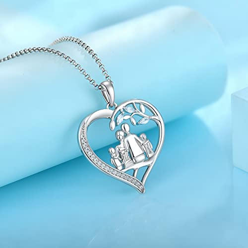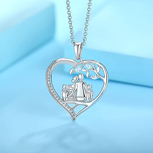 JO WISDOM Collana di Famiglia Albero della Vita Argento 925 Donna,Ciondolo con Catena Mamma Madre Figlia Papà Figlio Zirconia cubica 3A