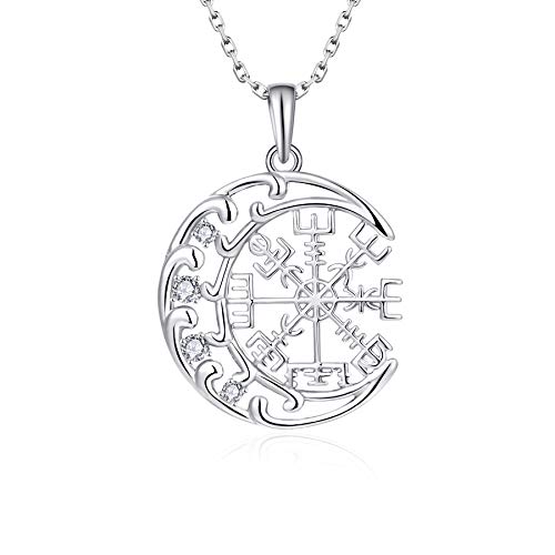 JO WISDOM Collana Moon Ciondolo Vegvisir Viking di Argento 925 Donna,Ciondolo con Catena Zirconia cubica 3A Aprile Birthstone