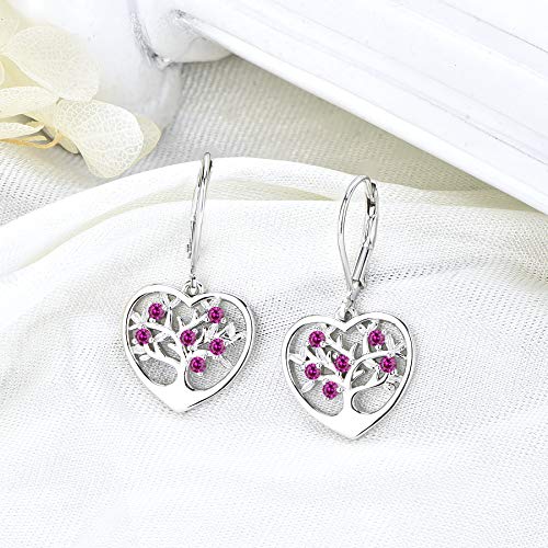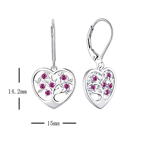 JO WISDOM Orecchini Cuore Albero Della Vita Argento 925 Donna con AAA Zirconia Cubica Luglio Birthstone Colore Rubino