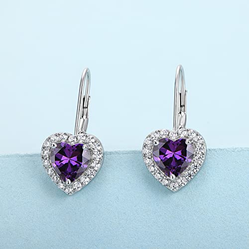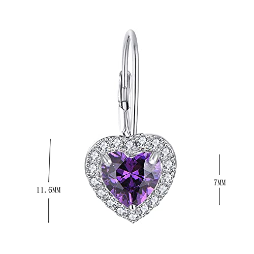 JO WISDOM Orecchini Cuore Argento 925 Donna con 5A Zirconia Cubica Febbraio Birthstone Colore Ametista
