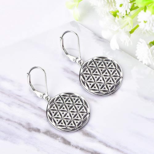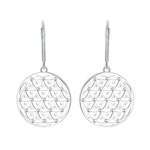 JO WISDOM Orecchini Fiore Della Vita Argento 925 Donna, Orecchini Orgone Sacred Geometry Family con placcato oro bianco