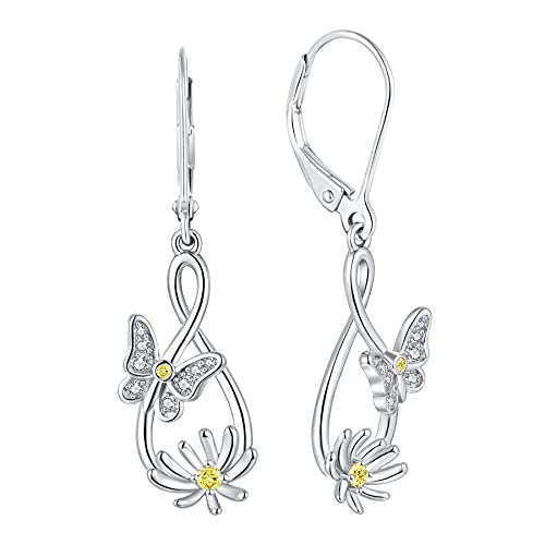 JO WISDOM Orecchini Infinito Argento 925 Donna con 3A Zirconia Cubica,Orecchini Farfalla Fiore Margherita per le Ragazze delle Donne