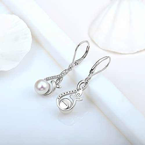JO WISDOM Orecchini Infinito a Farfalla Argento 925 Donna con 3A Zirconia Cubica,Orecchini di Perle d'Acqua Dolce da 8 mm per le Ragazze delle Donne