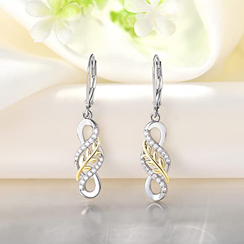 JO WISDOM Orecchini Infinito Foglia Argento 925 Donna con AAA Zirconia Cubica con placcato in oro rosa