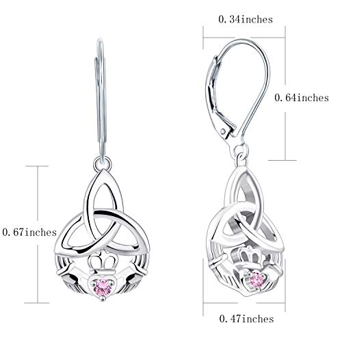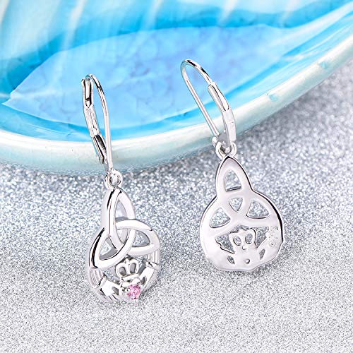 JO WISDOM Orecchini a Nodo in Argento 925 Donna con 3A Zirconia cubica Ottobre Birthstone Colore Tormalina,Orecchini a Irlandesi Triquetra Celtico Nodo,Gioielli per le Donne