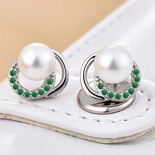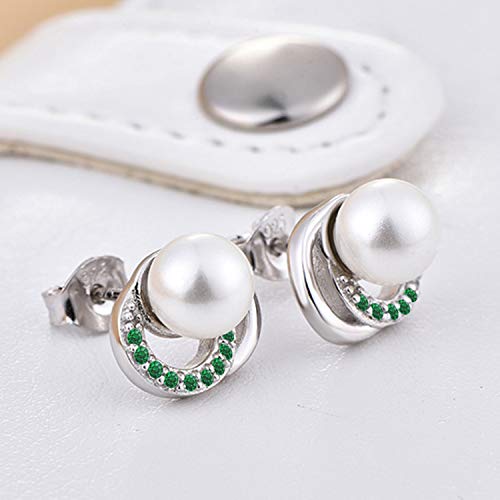 JO WISDOM Orecchini Perle Argento 925 Donna con 7mm Perla d'acqua dolce semicircolare AAA Zirconia Cubica Può Birthstone Colore Smeraldo