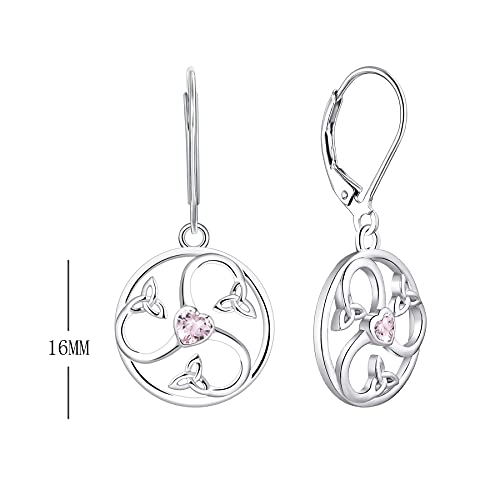 JO WISDOM Orecchini a Triskele Spirale in Argento 925 Donna con 3A Zirconia cubica Ottobre Birthstone Colore Tormalina,Orecchini a Irlandesi Triquetra Celtico Trinità Nodo
